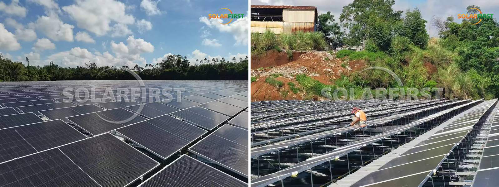 تتطلب مشاريع الطاقة الشمسية الكهروضوئية العائمة متطلبات أكثر تعقيدًا من الأنظمة الأرضية، بما في ذلك الطفو والاستقرار والتكيف البيئي. وقد تغلبت شركة سولار فيرست على هذه التحديات باستخدام نظامنا العائم المصنوع من البولي إيثيلين عالي الكثافة (HDPE) الذي طورناه بأنفسنا. يتيح هذا الحل خفيف الوزن والصديق للبيئة تركيبًا سريعًا دون الحاجة إلى معدات ثقيلة، كما يوفر مقاومة عالية للظروف القاسية مثل الأعاصير والأمطار الغزيرة.
