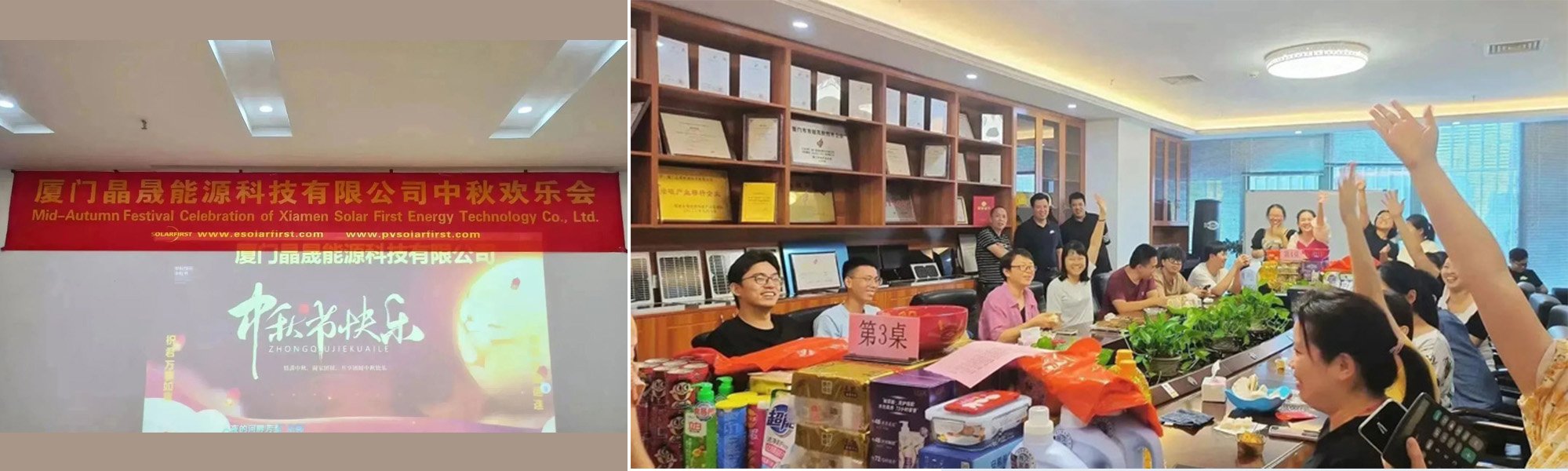 في مساء يوم 27 سبتمبر، استضافت شركة سولار فيرست فعالية "مقامرة كعكة القمر" بمناسبة مهرجان منتصف الخريف لعام 2023. وكما جرت العادة، جمعت الشركة جميع موظفيها لمشاركة فرحة لمّ شملهم في منتصف الخريف.