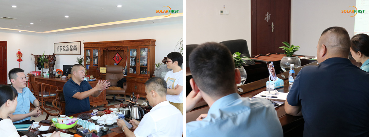 خلال الزيارة، عقدت شركة شينيي للزجاج ومجموعة سولار فيرست مؤتمرًا ثلاثيًا عبر الفيديو مع أحد أبرز عملاء مجموعة سولار فيرست في اليابان. ركزت المناقشات على استراتيجية السوق، وآليات الدعم الفني، وتنفيذ الطلبات الحالية. وأكدت الشركتان التزامهما الراسخ بتعزيز التعاون وتحقيق التميز المتبادل. وانتهت جميع الاجتماعات بنجاح.