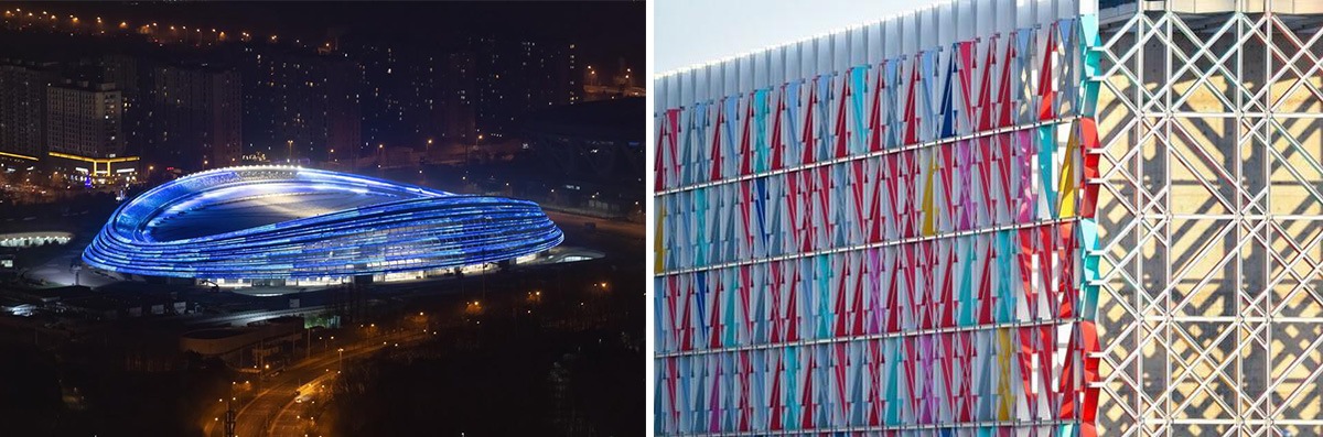 من بين المفاهيم الأربعة الرئيسية لدورة الألعاب الأولمبية والبارالمبية الشتوية في بكين 2022، يتصدر مفهوم "الأخضر" المشهد. يلتزم المضمار الوطني للتزلج السريع، المعروف أيضًا باسم "الشريط الجليدي"، باعتباره الملعب الوحيد المُشيّد حديثًا لمسابقات الجليد في منطقة بكين، بمبدأ البناء الأخضر. تعتمد واجهته الخارجية على جدار ستاري كهروضوئي منحني، يتكون من 12,000 قطعة من الزجاج الكهروضوئي الأزرق الياقوتي، مُوازنًا بشكل مثالي بين المطلبين الرئيسيين: جمالية العمارة وحماية البيئة.
