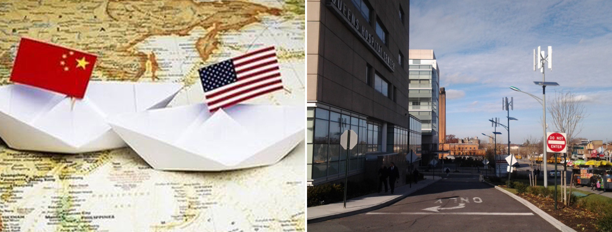 تجدر الإشارة إلى أنه في مجال التكنولوجيا الخضراء، تُستخدم المنتجات التي تقدمها الشركات الصينية أيضًا في مشاريع البنية التحتية في الولايات المتحدة. على سبيل المثال، قامت مجموعة سولار فيرست بتصميم وتوريد نظام إنارة الشوارع الهجين المبتكر الذي يجمع بين طاقة الرياح والطاقة الشمسية في نيويورك، الولايات المتحدة. تدمج هذه الإنارة الألواح الشمسية وتوربينات الرياح الصغيرة، بهدف تعزيز كفاءة الطاقة وموثوقيتها.