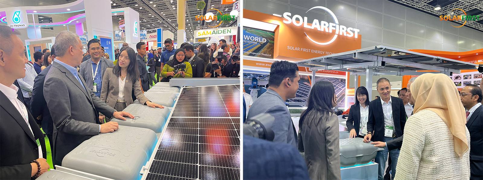 خلال الفعالية، زارت السيدة فضيلة يوسف، وزيرة الطاقة والتحول المائي الماليزية ونائبة رئيس وزراء ولاية سراوق، جناح شركة سولار فيرست. واستقبل الوفدَ رئيسُ الشركة السيد يي سونغ بينغ، والرئيسةُ التنفيذية السيدة تشو بينغ، وأجروا مناقشاتٍ قيّمة.
