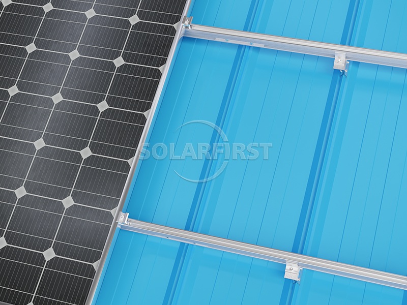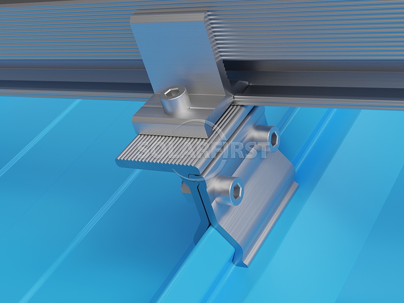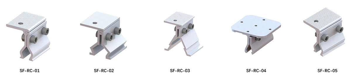 يستخدم النظام مكونات وقضبان تثبيت السقف المعدنية خفيفة الوزن من الألومنيوم، مما يقلل الحمل الإضافي على هيكل السقف الأساسي. صُممت حوامل السقف ذات المشابك الشمسية الزاوية المصممة خصيصًا لتناسب مختلف أشكال ألواح السقف الزاوية، مما يضمن تثبيتًا آمنًا دون اختراق السقف. لمزيد من المرونة، يمكن دمج مشبك السقف مع حوامل ذات قاعدة على شكل حرف L لتحقيق أفضل ارتفاع وموضع للوحدة الشمسية.
