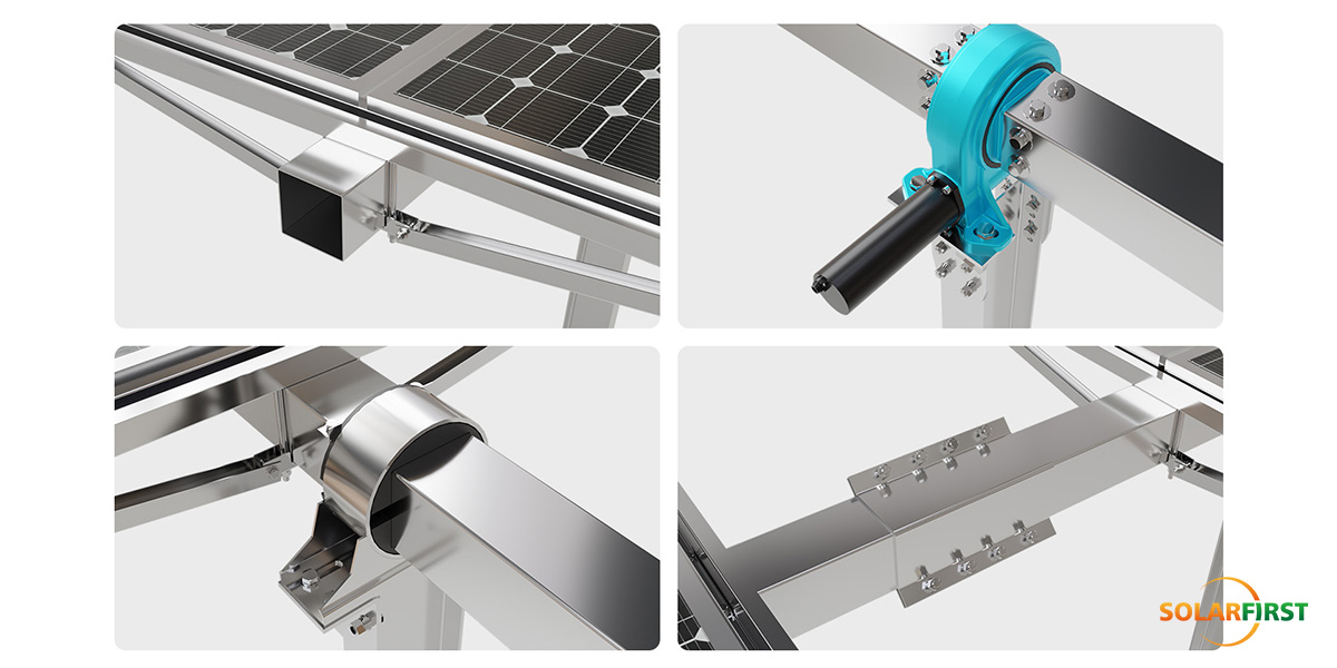 يضبط نظام التتبع الذكي زاوية الميل (حتى ±45 درجة) آنيًا باستخدام بيانات التضاريس والطقس، بينما يضمن نظام مراقبة مستقل موثوقية التشغيل وسرعة اكتشاف الأعطال. صُنع جهاز التتبع من فولاذ مجلفن بالغمس الساخن ومطلي بالزنك والألمنيوم والمغنيسيوم (بسمك طلاء ≥65 ميكرومتر)، مما يوفر مقاومة طويلة الأمد للتآكل، وهو متوفر مع أساسات الخرسانة المسلحة (PHC) أو المصبوبة في الموقع أو أساسات الأكوام الفولاذية.