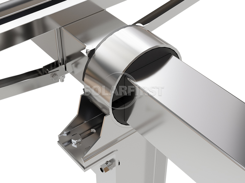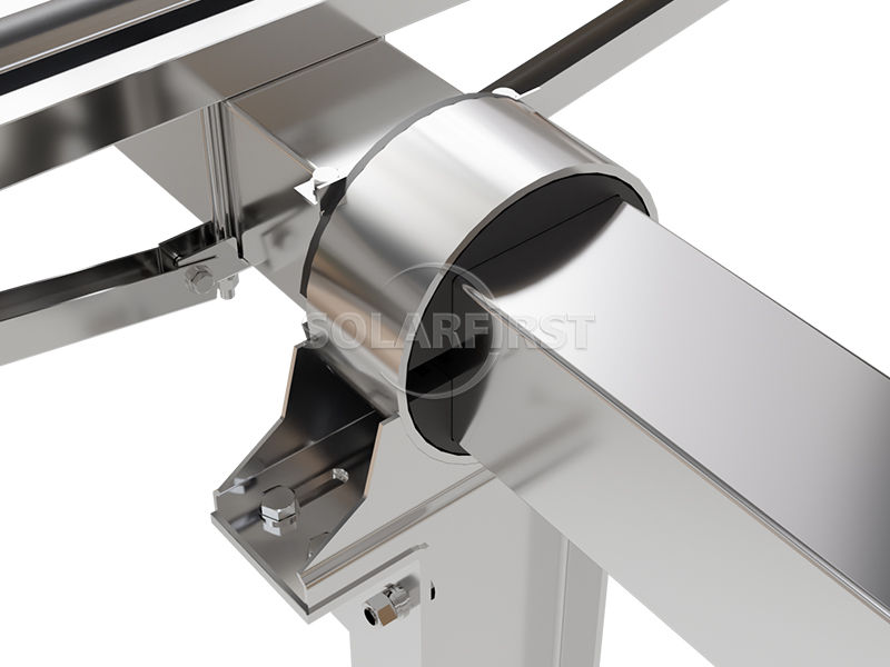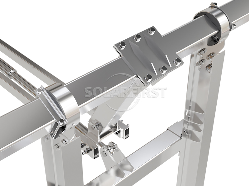 الهيكل الرئيسي مصنوع من فولاذ مجلفن بالغمس الساخن أو مطلي بالزنك والألمنيوم والمغنيسيوم، بمتوسط سمك طلاء ≥ 80 ميكرومتر. يستخدم نظام دفع دوار، ويدعم أنواعًا مختلفة من الأساسات، بما في ذلك الأساسات الخرسانية المسلحة (PHC)، والأساسات المصبوبة في الموقع، والأساسات الفولاذية.
