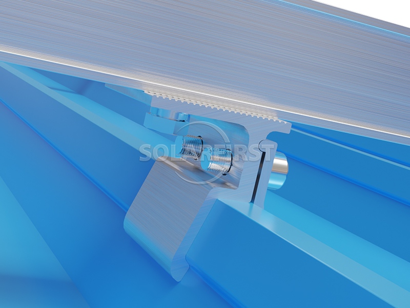 يستخدم النظام مشابك وقضبانًا من الألومنيوم المؤكسد، مما يُخفف الحمل على هيكل السقف الأساسي. يختلف تصميم مشابك كليب لوك ليتناسب مع مختلف أشكال ألواح التسقيف. لمزيد من التنوع، يمكن دمج مشبك السقف مع دعامة قدم على شكل حرف L لرفع الألواح الشمسية إلى زاوية الميل المطلوبة.