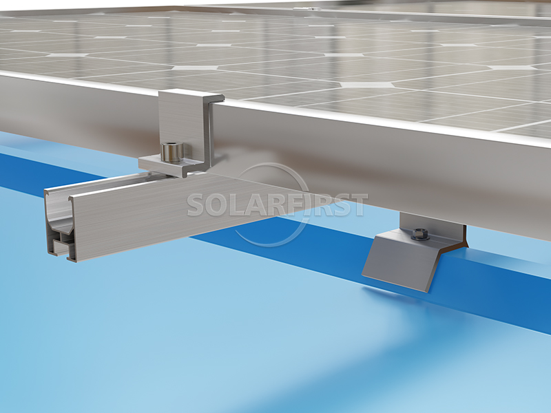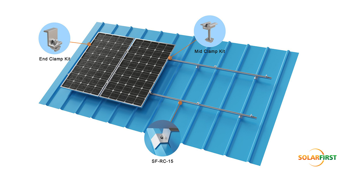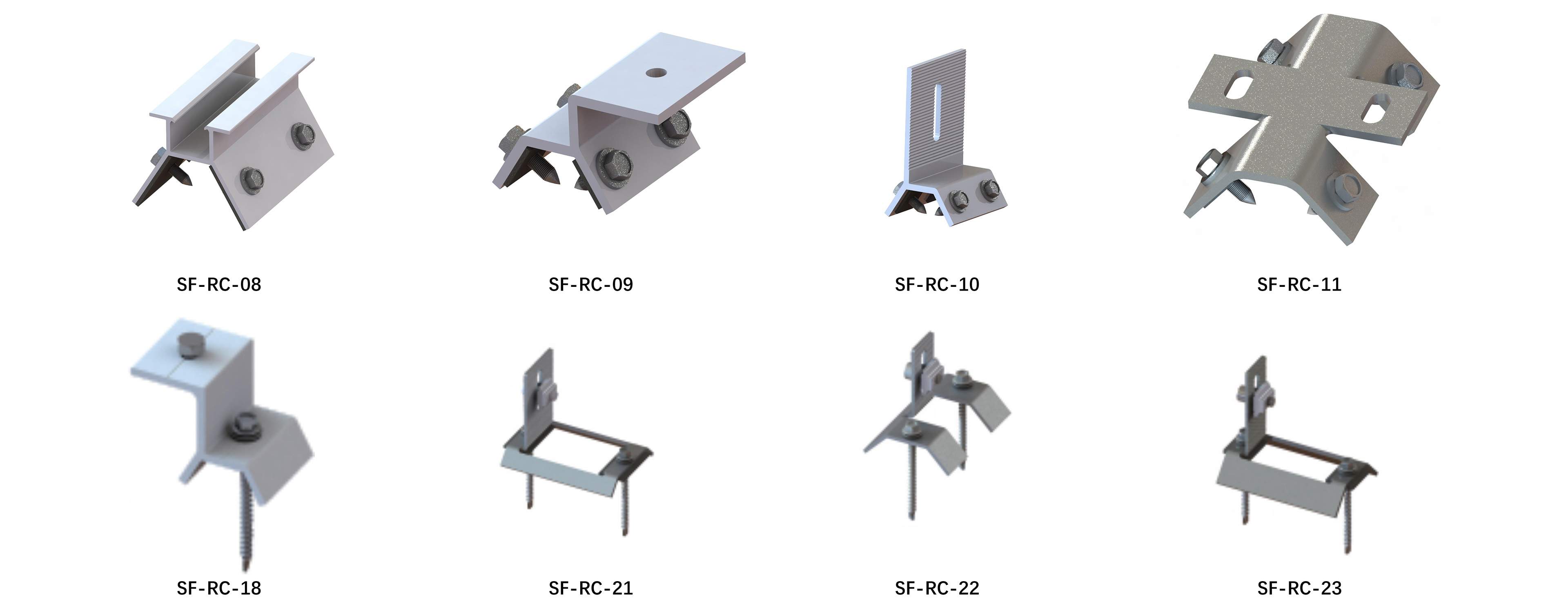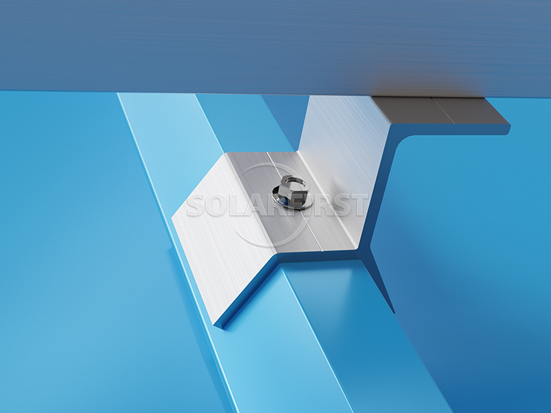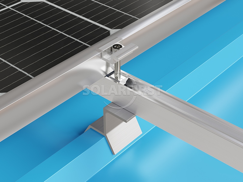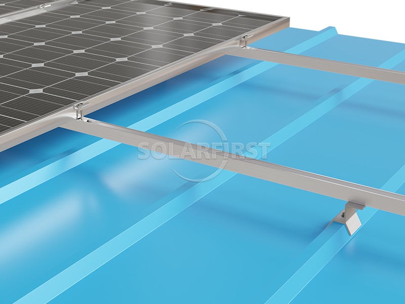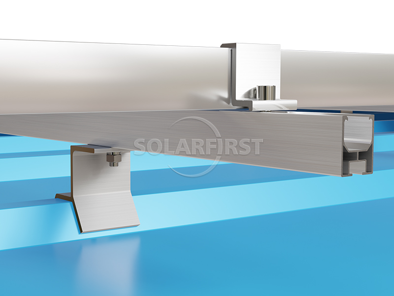 يستخدم النظام مشابك سقف شمسية معدنية شبه منحرفة مصممة خصيصًا، تتوافق تمامًا مع أضلاع السقف شبه المنحرفة، مما يزيل الفجوات ويضمن أداءً مقاومًا للعوامل الجوية. تعمل مكونات حاملات السقف المعدنية المتخصصة هذه جنبًا إلى جنب مع قضبان ألومنيوم خفيفة الوزن لتوزيع الحمل بالتساوي على هيكل السقف، مما يقلل الضغط الإضافي على المبنى. يتضمن نظام حوامل السقف الشمسية الكامل مشابك مصممة خصيصًا للألواح الشمسية، تحافظ على موازاة الوحدات لسطح السقف مع توفير تثبيت آمن وموثوق.